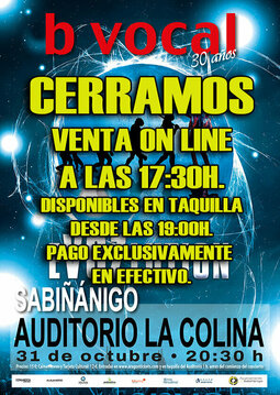 En su nuevo espectáculo, B VOCAL (que en 2025 celebran su 30 aniversario) se adentra con el público en un impresionante viaje en el tiempo, desde los monasterios y las tabernas medievales hasta las discotecas y los grandes conciertos, pasando por los mejores momentos de la historia en los que la VOZ ha evolucionado a través de la música, llenando de energía y emoción a la humanidad. También el público podrá descubrir los momentos más personales y divertidos del grupo y disfrutar de su propia EVOZLUTION.